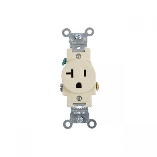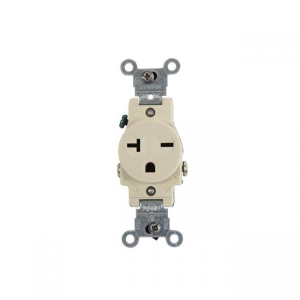 TOMACORRIENTE SIMPLE PARA EMPOTRAR L/T COMERCIAL 20A 125V MARFIL