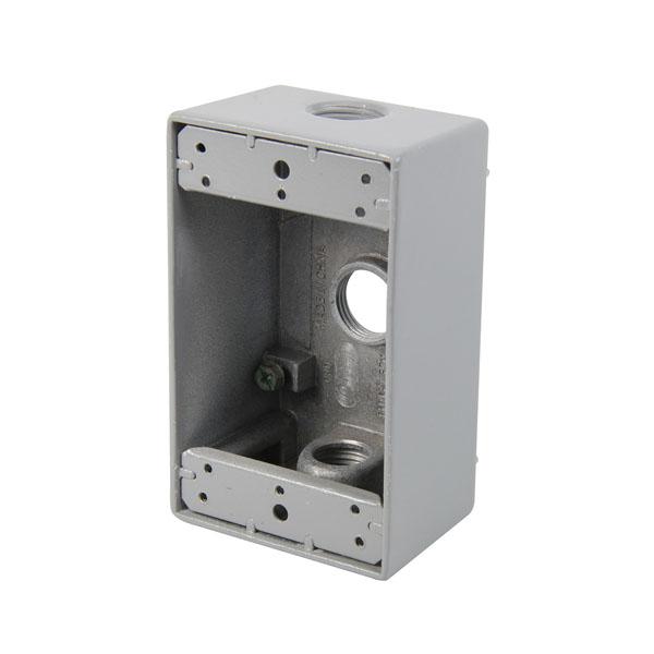 CAJA RECTANGULAR 3/4, 3 SALIDAS DE ACERO